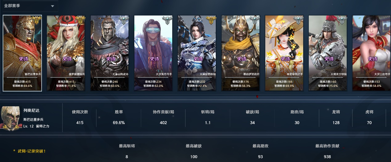 答:虽然说我在直播的时候经常使用骑兵位去游玩战局,但是我其实最拿手的武将还是列奥尼达,虽然目前版本列奥尼达上场率因强度不是很高(呜呜呜加强列奥啊)。至于为什么自认为擅长的武将是列奥尼达,你怎么知道我曾经用列奥尼达47连胜从公爵直接上皇了?