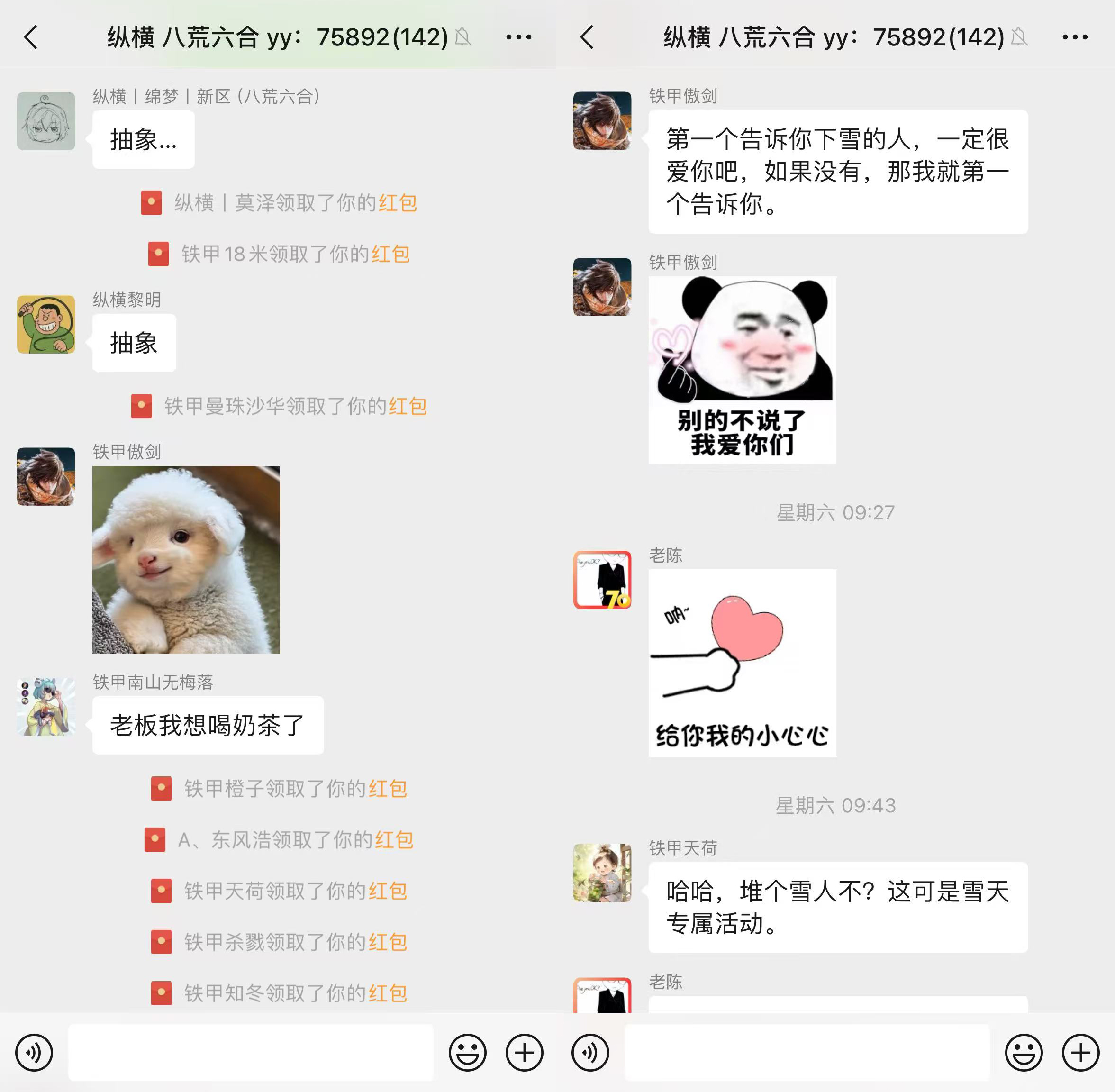 平时群里会分享生活日常、搞笑视频、斗斗表情包什么的哈哈。总之来说大家一起玩就是为了开心,无兄弟,不领土!