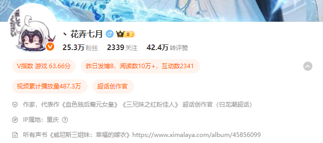 文采飞扬,才高八斗。今天来到我们栏目做客的@花弄七月是一名作家,他同时也是一位自媒体博主,掌声欢迎!