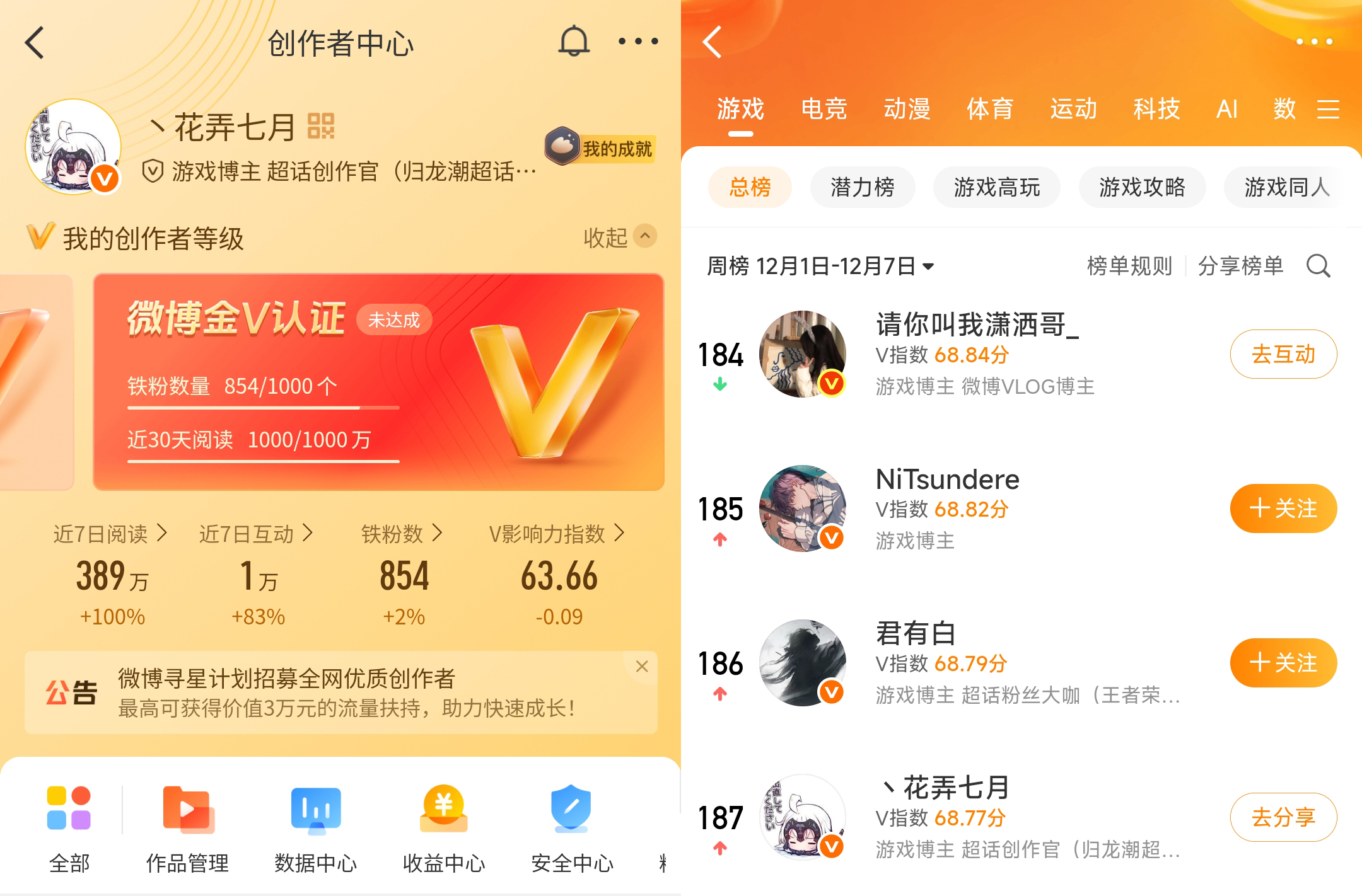 答:还好吧!现在是微博游戏领域游戏赛道博主。能很快在微博这种平台仅两个月时间做起来,觉得自己比较幸运。