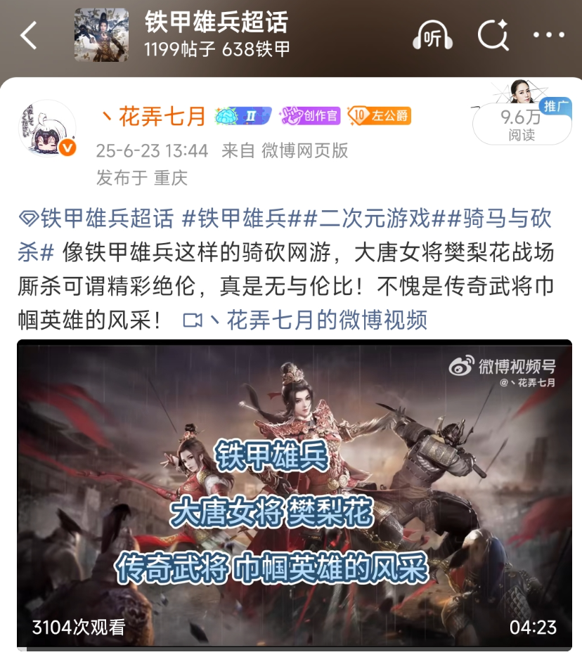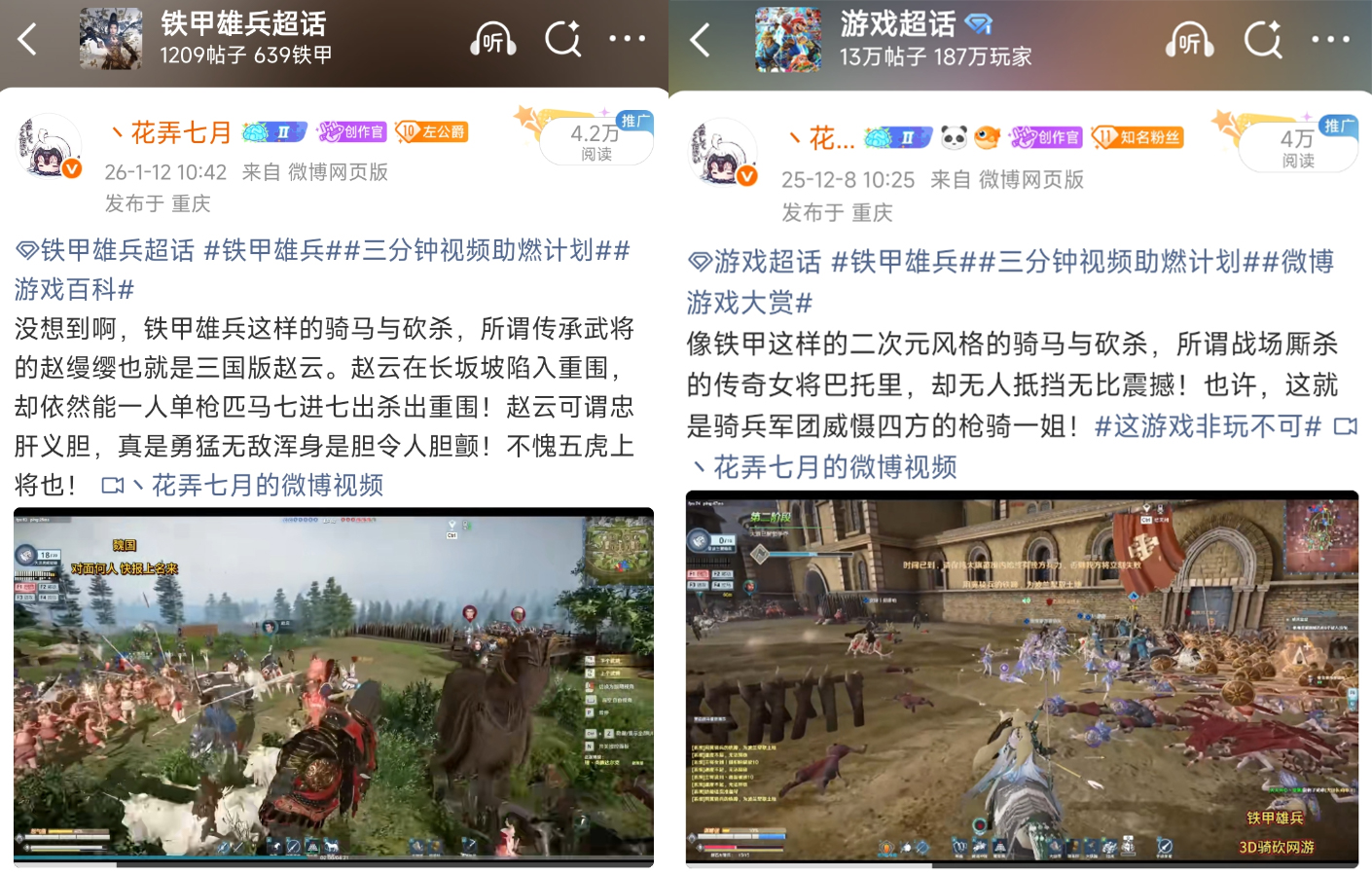 我是靠手游做起来的号,但我依然坚持发铁甲雄兵这类骑砍游戏,除了自己喜欢那就是为了游戏能越来越好,以自己在其他平台的单薄力量为游戏尽一份力!除了微博,比如在B站和小红书这些平台!