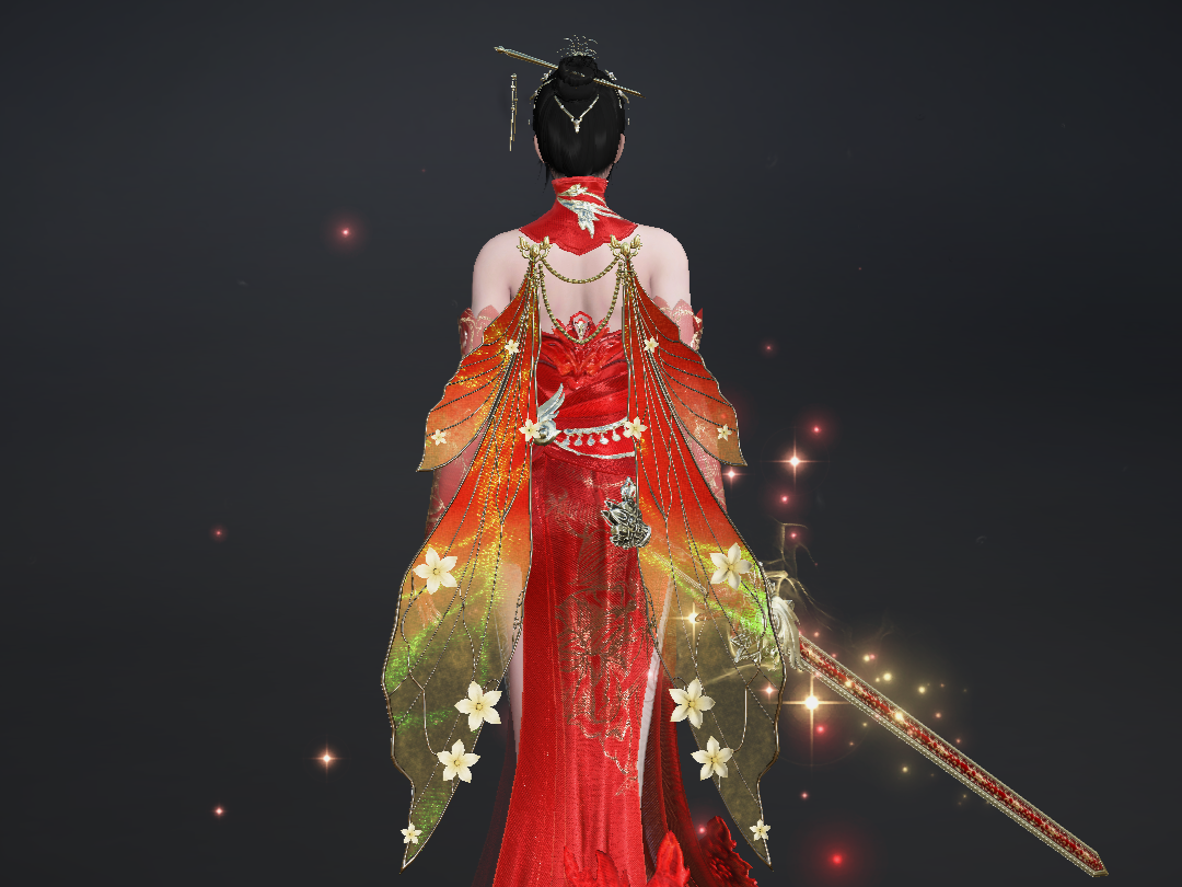 红妆映刃,蝶翼生风,这披风比翼双飞既是爱情的誓约,亦是踏破千军的锋芒。