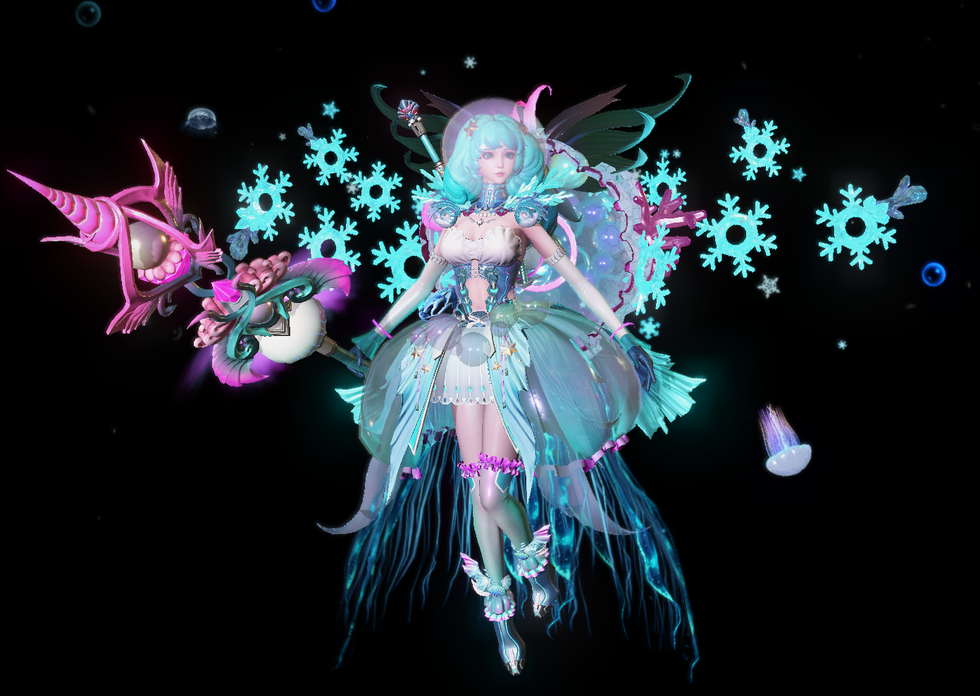 在水母游鱼织就的幻梦中,冰晶的花在身侧开成星河。伊莎贝拉觉醒皮肤合成特效升级为【呢喃】,视觉体验华丽焕新!按T键使用任意动作即可触发此特效。
