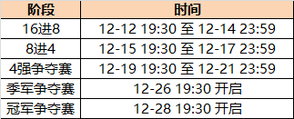 b.助威竞猜:12月4日起,君主每日登录游戏、开启120活跃度宝箱可领取助威券。12月12日12:00起可在投票助威界面为您支持的战队投票,并获得投票积分
