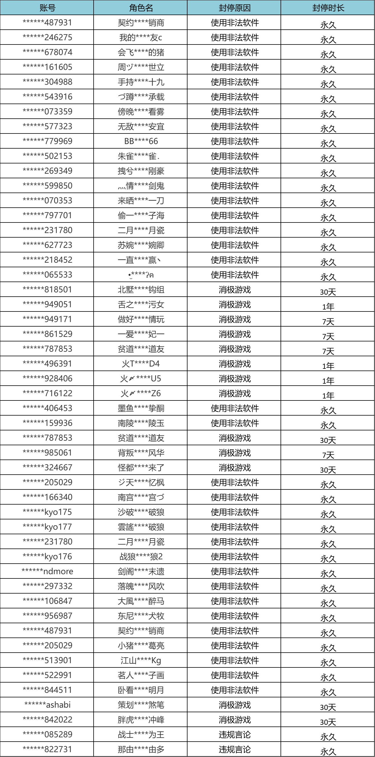 以下为本次公布的封停名单: